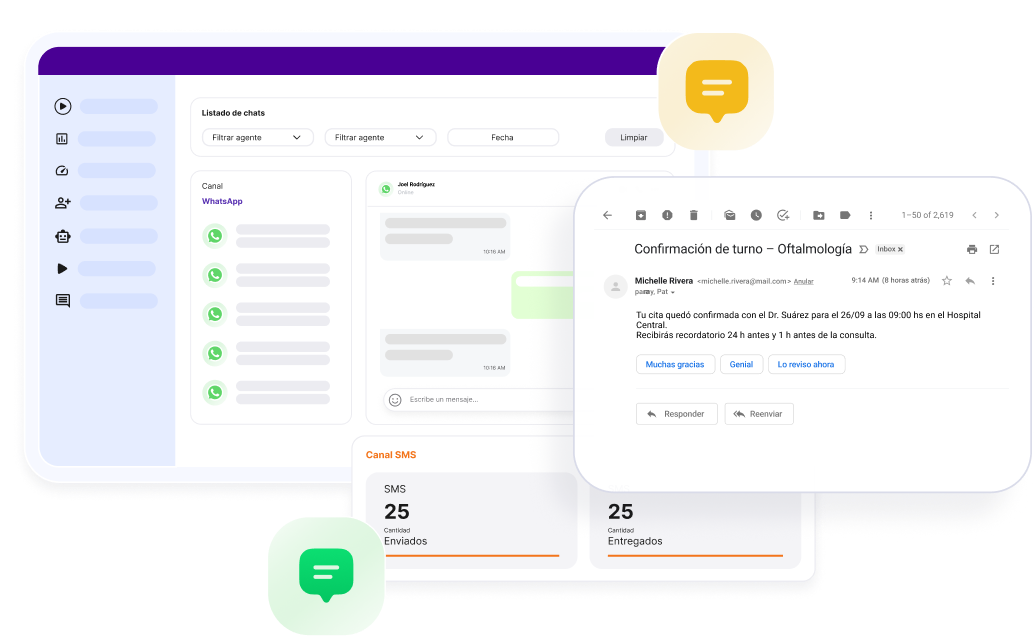 Comunicación médica sin fricciones. Centraliza tus canales, automatiza agendamientos y asegura atención oportuna para cada paciente.